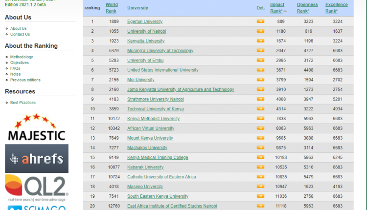 Egerton University is once more among the top universities in Kenya, Africa, and the world in the January 2021 webometrics ranking. The ranking was based on ‘Impact’, ‘Openness’, and ‘Excellence’.