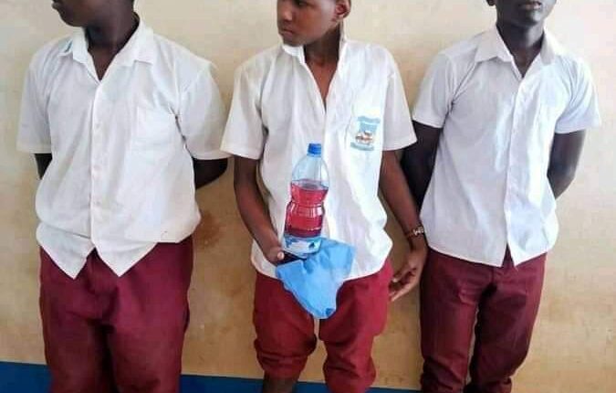 While making the arrests, the three boys were found with what looked like kerosene and turpentine in a water bottle together with a matchbox.