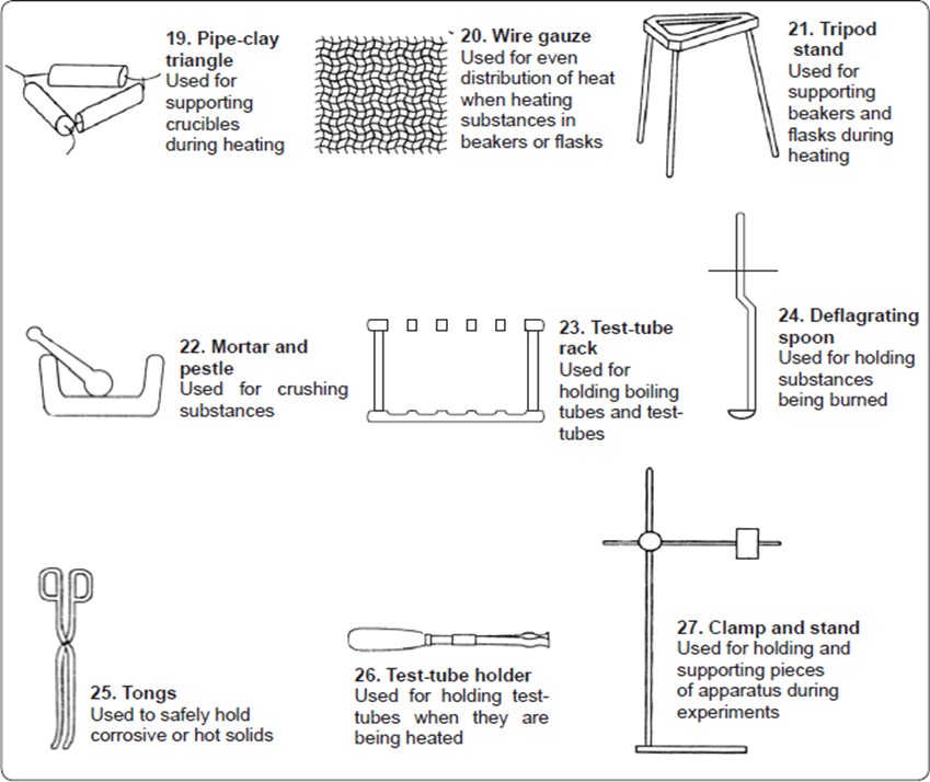 The pieces of apparatus used as sources of heat include the Bunsen burner, spirit lamp, candle, gas stove (portable burner), kerosene stove and electric heater. The Bunsen burner is the most suitable source of heat in laboratories.