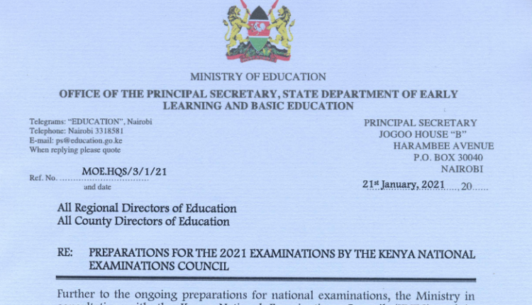 RE: PREPARATIONS FOR THE 2021 EXAMINATIONS BY THE KENYA NATIONAL EXAMINATIONS COUNCIL
