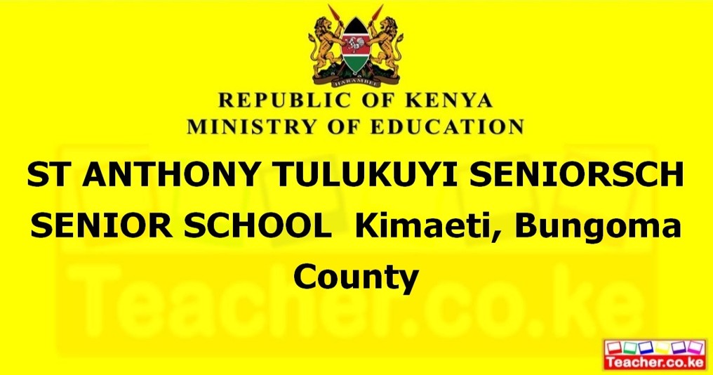 St Anthony Tulukuyi Seniorsch Senior School (formerly St Anthony Tulukuyi Secondarysch Secondary School) is a C4 Public Mixed school located in Bungoma County, Kimaeti Sub-county, Kenya.