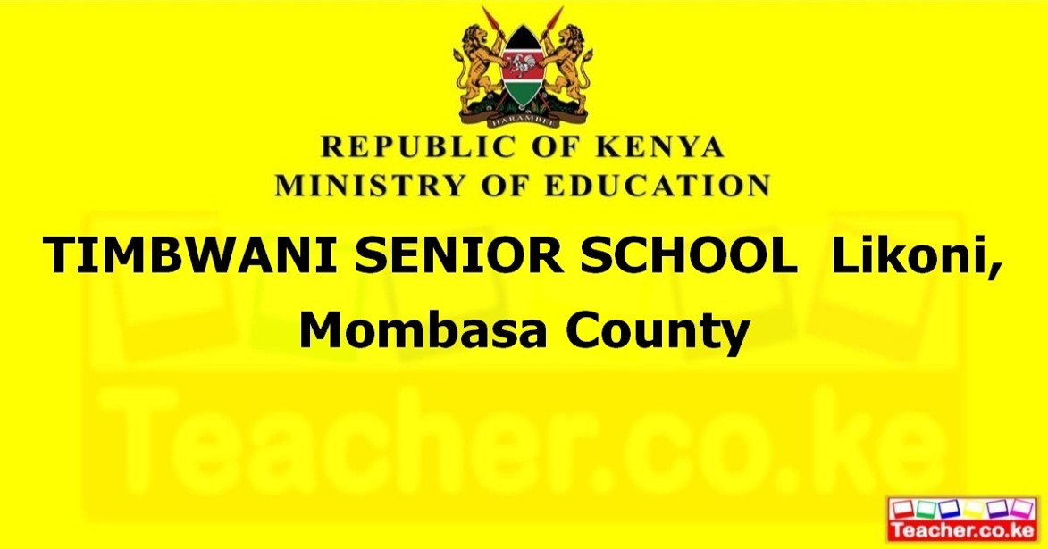Timbwani Senior School (formerly Timbwani Secondary School) is a C4 Public Mixed school located in Mombasa County, Likoni Sub-county. This Day institution is part of the Coast education network and has transitioned to a Senior School hosting Grade 10, 11, and 12 learners under the CBC framework.