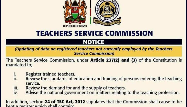 The Teachers Service Commission (TSC) has issued a formal notice extending the deadline for the nationwide updating of data for all registered teachers not currently in its employment. The Commission has set a new submission deadline for midnight on April 7, 2026, according to an official statement released by the body.