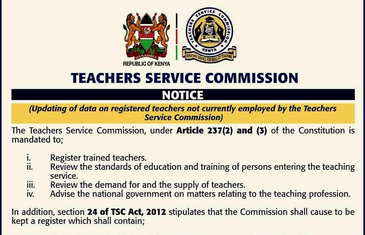 The Teachers Service Commission (TSC) has issued a formal notice extending the deadline for the nationwide updating of data for all registered teachers not currently in its employment. The Commission has set a new submission deadline for midnight on April 7, 2026, according to an official statement released by the body.