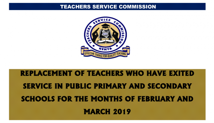 REPLACEMENT OF TEACHERS WHO HAVE EXITED SERVICE IN PUBLIC PRIMARY AND SECONDARY SCHOOLS FOR THE MONTHS OF FEBRUARY AND MARCH 2019
