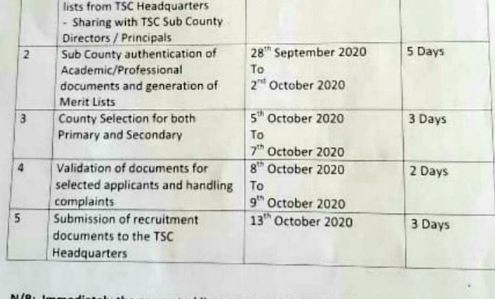 TURKANA COUNTY REVISED TSC RECRUITMENT SCHEDULE SEPTEMBER 2020